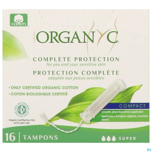 Tampons Compact Super Avec Applicateur en Coton Bio 16 Unités