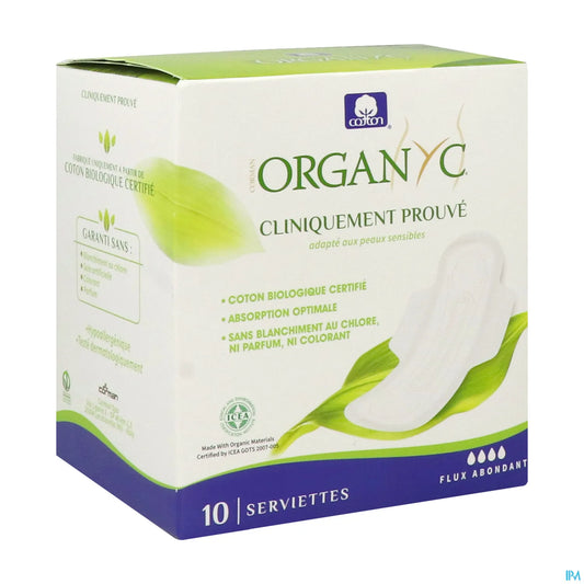Serviettes Hygiéniques Coton Bio Flux Abondant 10 Unités