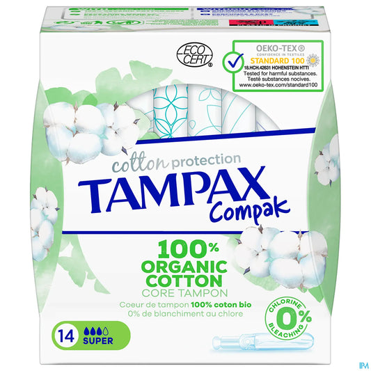 Compak Cotton Protection Super 100% Organic Cotton 14 Tampons