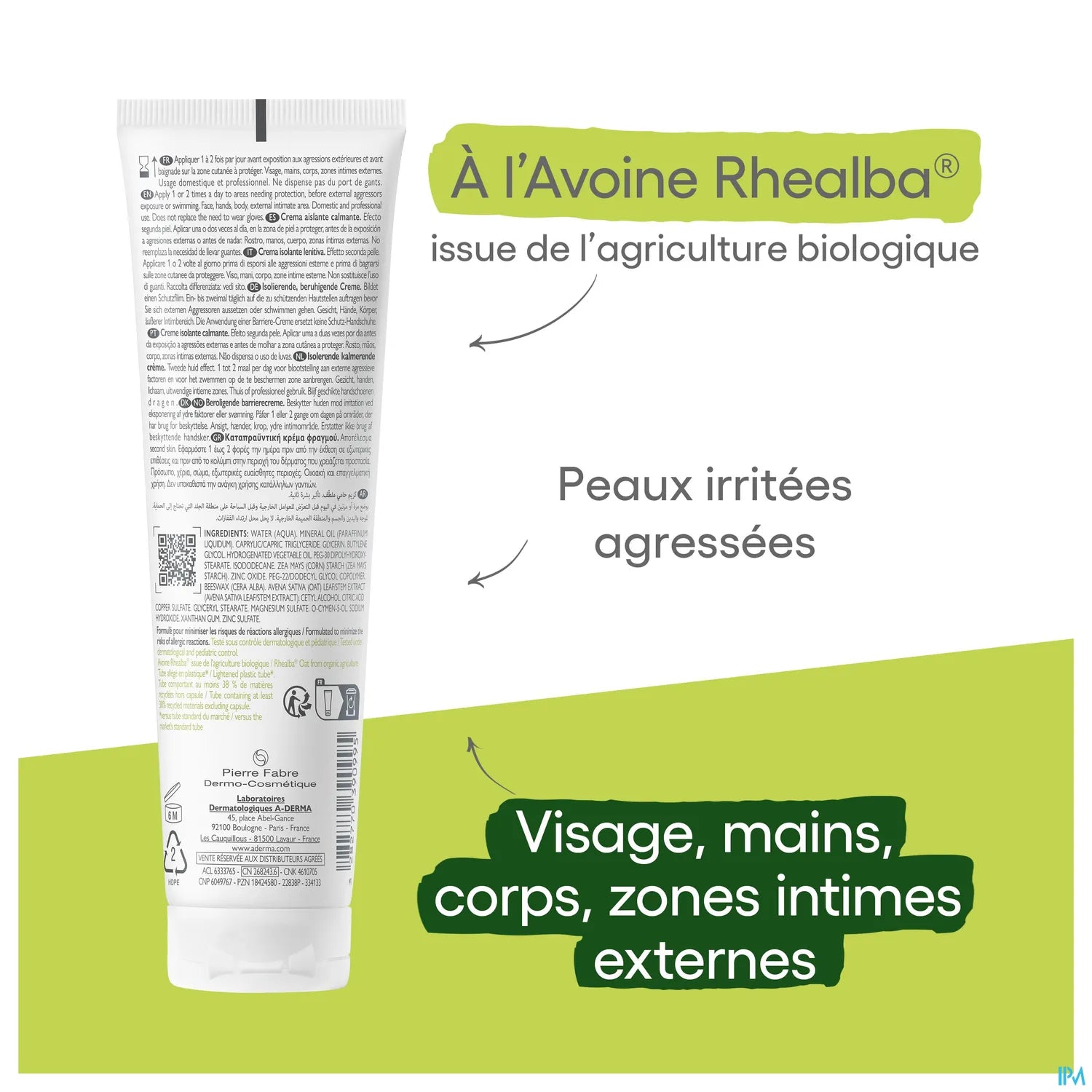 Insulating barrier cream that forms a second-skin effect to protect the skin from external aggressions. The high-tolerance formula contains organically grown Rhealba Oat to soothe fragile skin. Copper and zinc limit the risk of bacterial proliferation. The product withstands up to five baths in freshwater, seawater, or chlorinated water. Suitable for the face, body, hands, and external intimate areas.