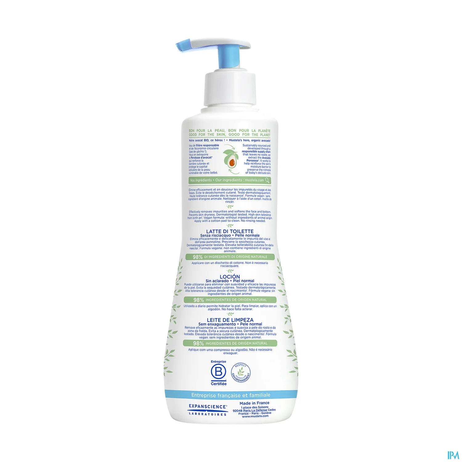 Mustela No-Rinse Cleansing Milk is specifically formulated for the delicate skin of infants. This gentle-textured cleansing milk is enriched with Avocado Perseose®, containing 98% natural ingredients, making it ideal for daily cleansing of your baby's skin while preserving skin balance. Its hypoallergenic and paraben-free formula ensures high-tolerance care. Climate- and dermatologically tested, this product guarantees safe use from birth.
