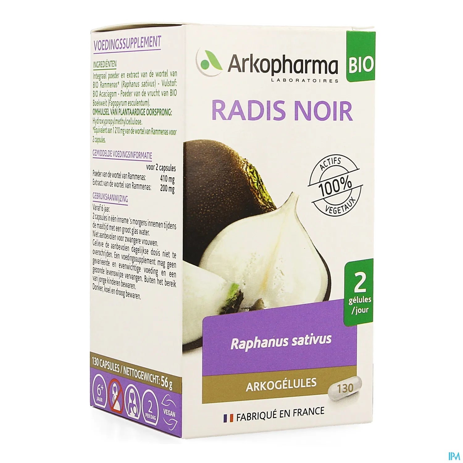 Arkogélules Bio Radish Noir è un integratore alimentare a base di ravanello nero (Raphanus sativus), ideale per stimolare la funzione epatobiliare, favorire la digestione e disintossicare l'organismo. Questo prodotto è particolarmente indicato per chi desidera mantenere una buona funzionalità digestiva e un fegato sano. Le capsule sono ottenute da ravanello nero coltivato con metodi di produzione biologica, garantendo così la purezza e l'efficacia del prodotto.