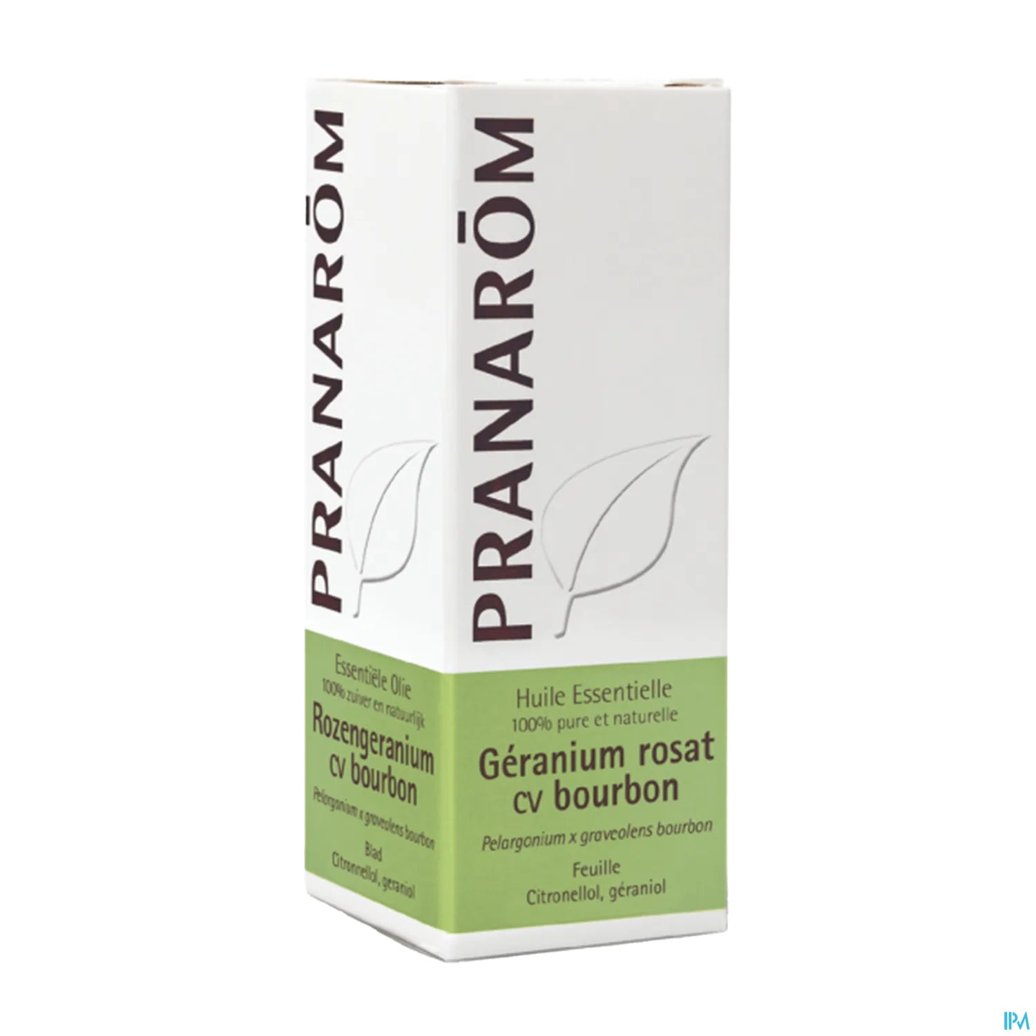 Pranarom. Olio essenziale di geranio rosa, cultivar Bourbon, confezionato in flacone da 10 ml. Estratto aromatico utilizzato in aromaterapia per la sua fragranza floreale e per le sue applicazioni in diffusione o per uso cutaneo diluito. Destinato all'uso occasionale negli adulti, dietro consiglio di un professionista.