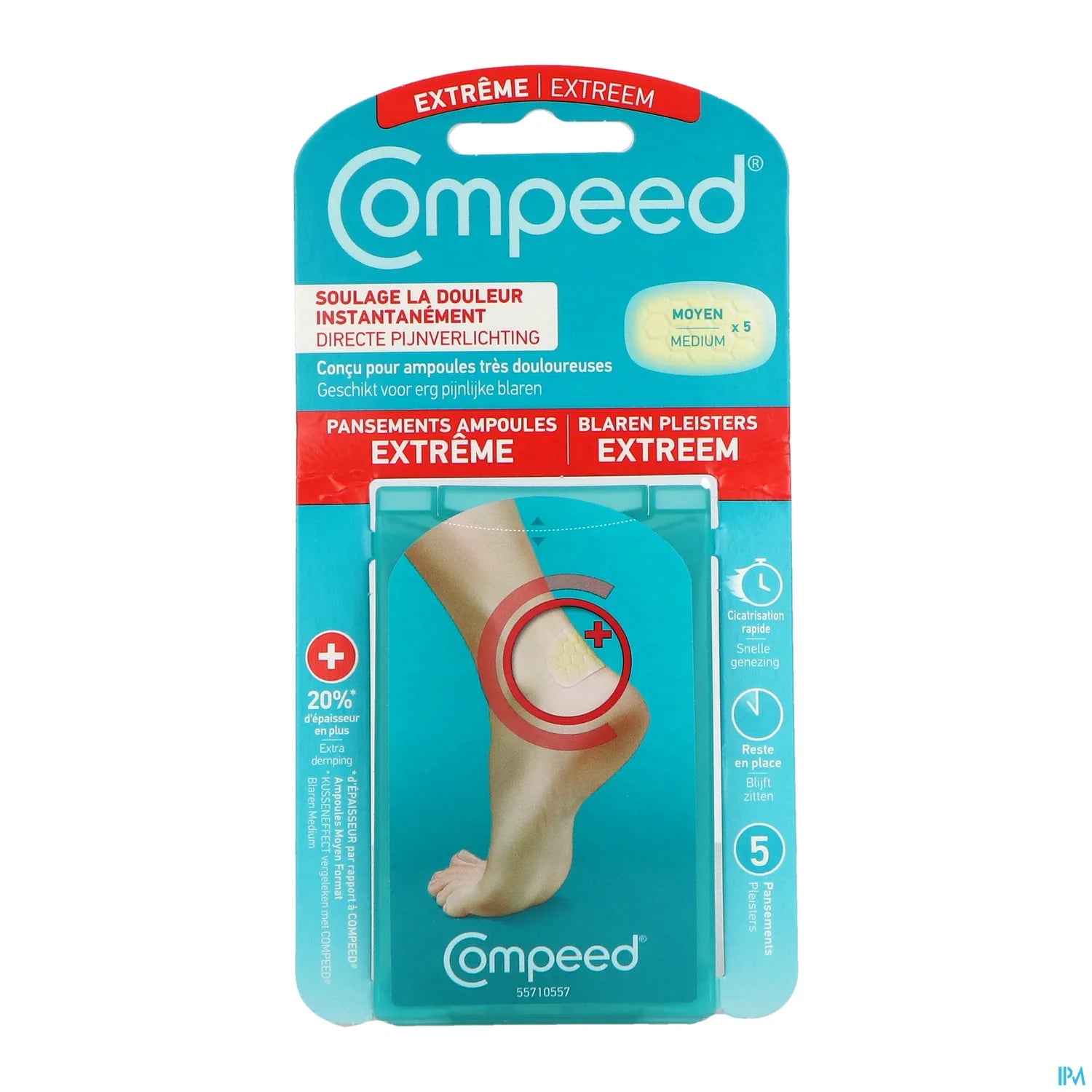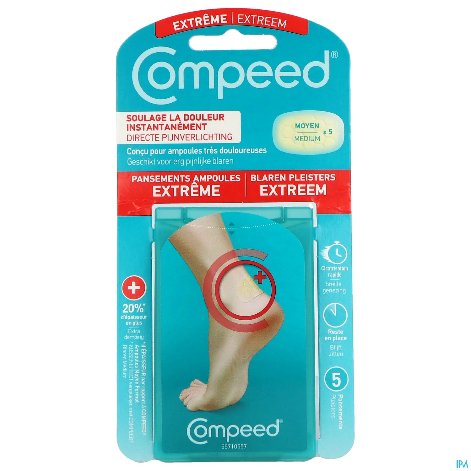 Les pansements Compeed Ampoule Extrême Moyen Format sont spécialement conçus pour offrir un soulagement rapide des ampoules. Utilisant la technologie Hydrocolloïde, ces pansements créent un environnement humide qui favorise la cicatrisation tout en protégeant la plaie contre l'eau, la poussière, et les bactéries. Ils réduisent la douleur et la pression et accélèrent le processus de guérison. Ces pansements sont parfaits pour les pieds, les doigts, les orteils, et le talon, conviennent pour les sportifs, les randonneurs, et ceux qui sont souvent en mouvement.