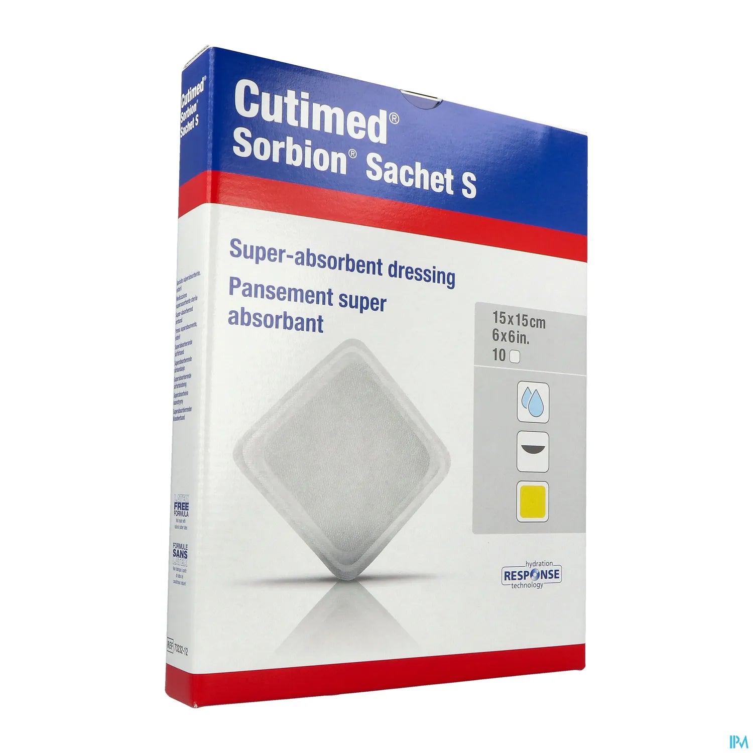 Cutimed. Pansement non adhésif Sorbion Pans 15 x 15 cm en boîte de 10 conçu pour une absorption élevée des exsudats. Il protège la plaie et favorise un environnement humide contrôlé pour la cicatrisation tout en limitant le traumatisme au retrait. Indiqué pour un usage en milieu hospitalier et en suivi ambulatoire.