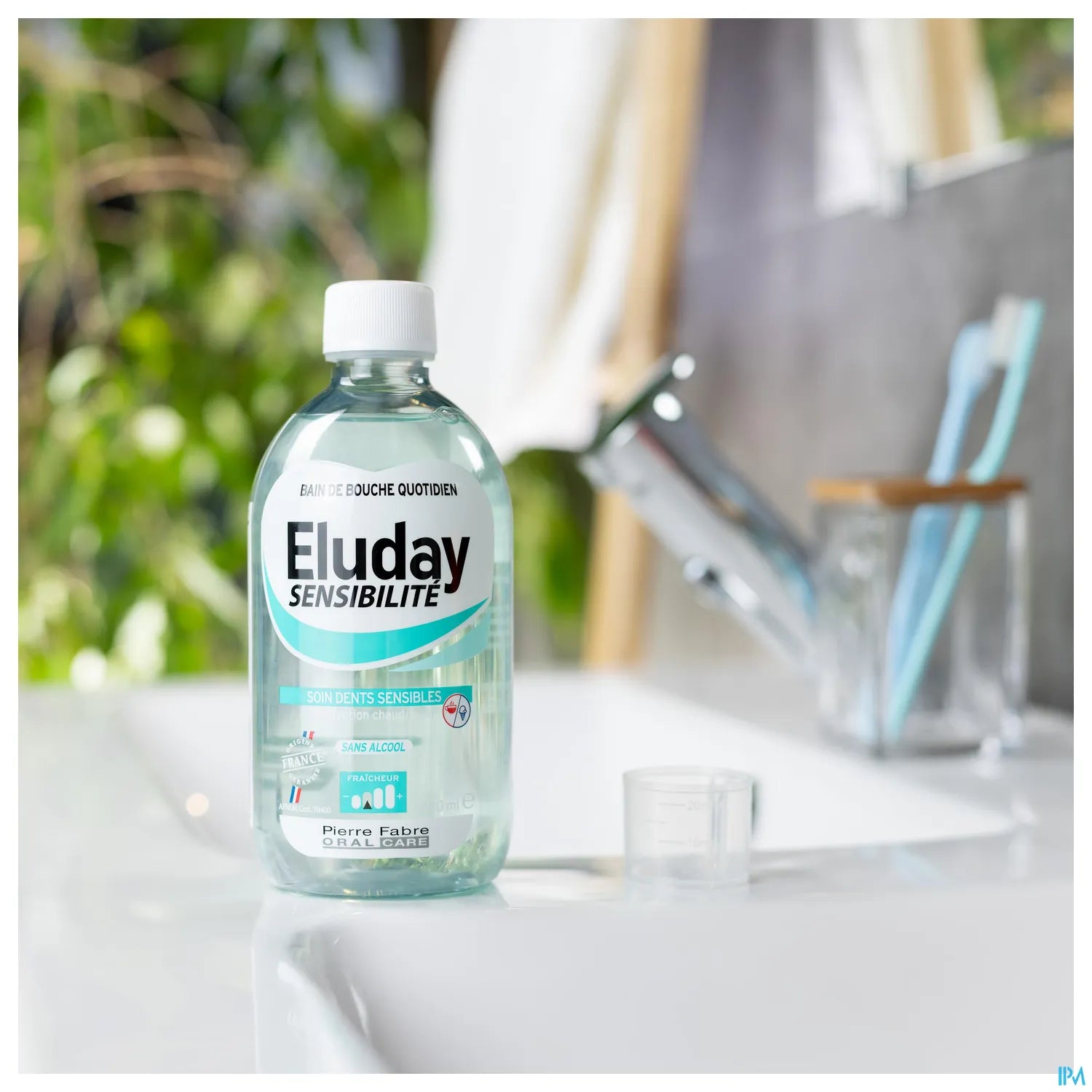 Eluday Sensibilité bain de bouche protège de la sensibilité dentaire et complète les bienfaits du brossage. Les dents deviennent quatre fois moins sensibles après quatre semaines d'utilisation quotidienne. Sans alcool et prêt à l'emploi, il procure une douce sensation mentholée et vanillée. Le flacon PET est recyclable et élaboré avec 100% de plastique recyclé.