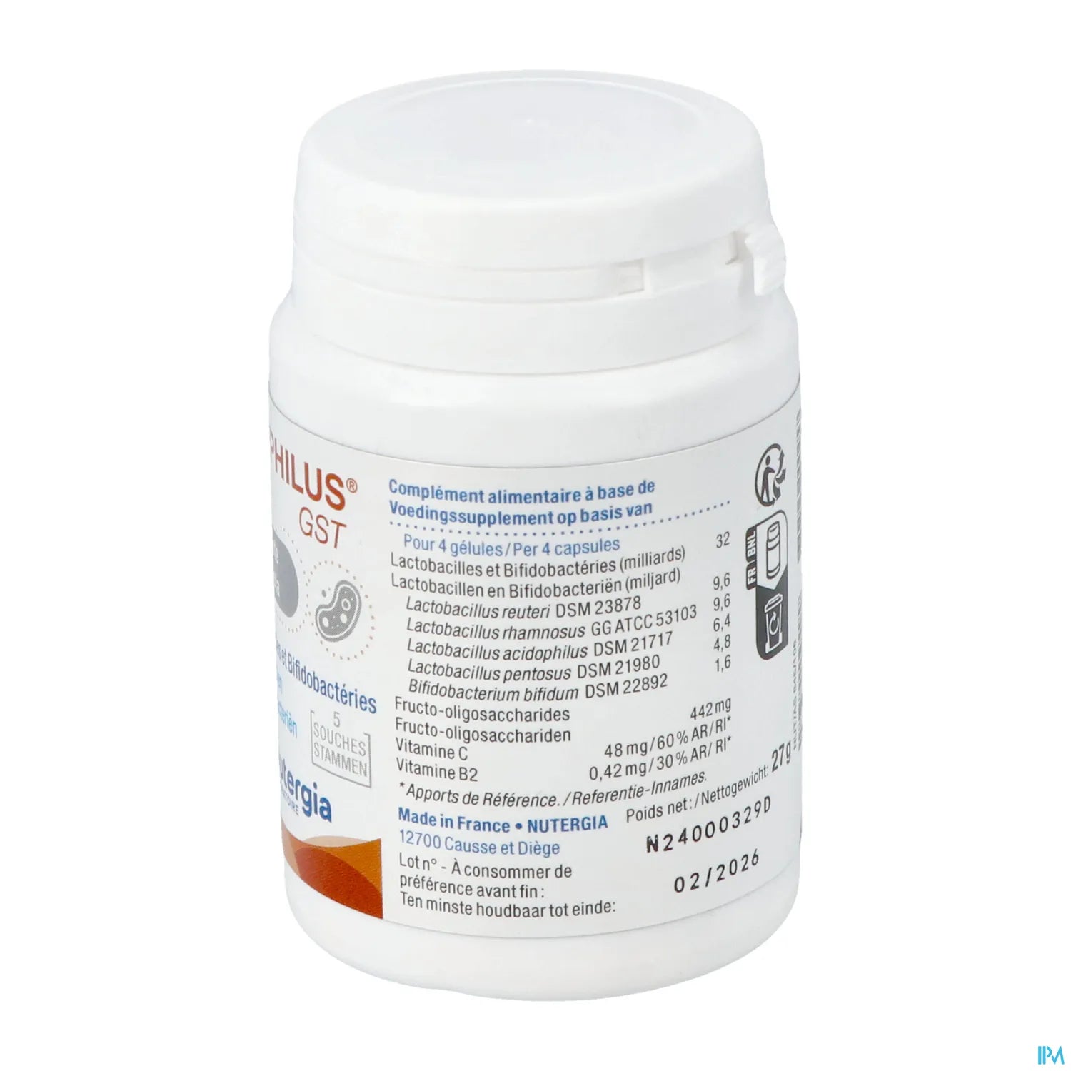 Nutergia Ergyphilus GST est un complément alimentaire conçu pour favoriser l'équilibre digestif. Il contient des ferments lactiques qui aident à restaurer la flore intestinale et soutenir une digestion saine. Ce produit est particulièrement indiqué pour les personnes souffrant de troubles digestifs, tels que des ballonnements ou des déséquilibres de la flore intestinale.